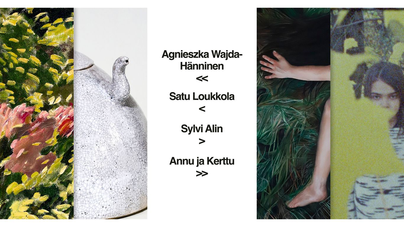 Galleria Uuden Kipinän (GUK) kolmen viikon välein vaihtuvat näyttelyt. Näyttelyjakso 1: Agnieszka Wajda-Hänninen / Satu Loukkola / Sylvi Alin / Annu ja Kerttu