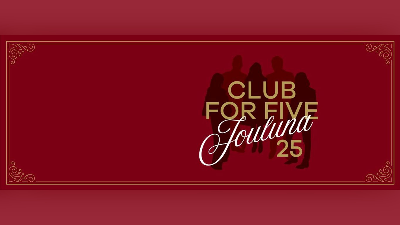 Club for Five – JOULUNA 2025 Tänä vuonna 25 vuotta täyttävän Club for Fiven juhlavuosi huipentuu perinteiseen JOULUNA-konserttikiertueeseen. Luvassa on viipyilevää tunnelmointia ja…