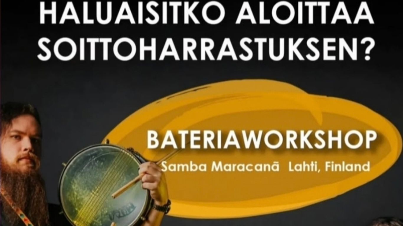 Haluaisitko aloittaa soittoharrastuksen? Tule tutustumaan rumpuihin ja samban rytmeihin workshopissa. Workshop sopii kaikille – olit sitten täysin aloittelija tai kokenut muusikko. Tule tutustumaan!