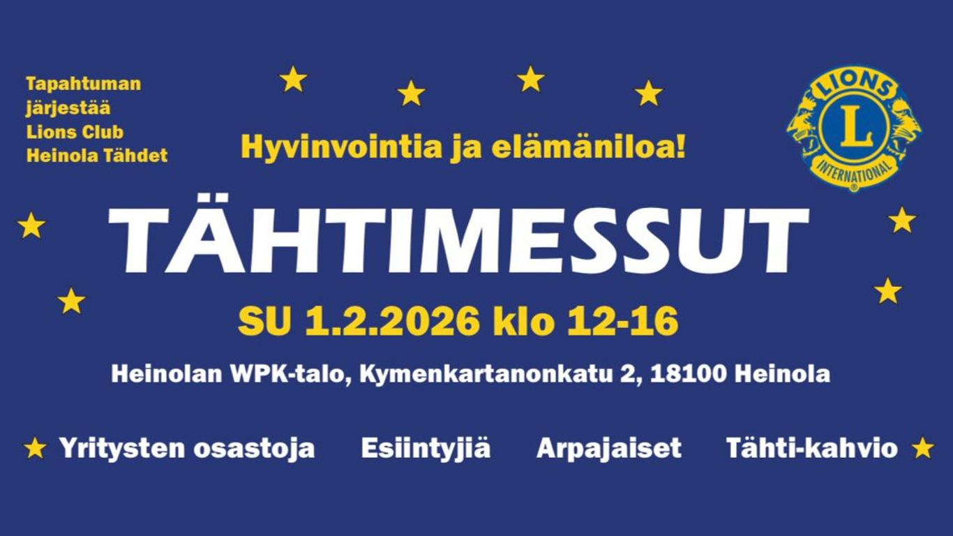 Tähtimessut tuo talven keskelle hyvinvointia ja elämäniloa. Mukana on yritysten osastoja, esiintyjiä, arpajaiset ja Tähtikahvio