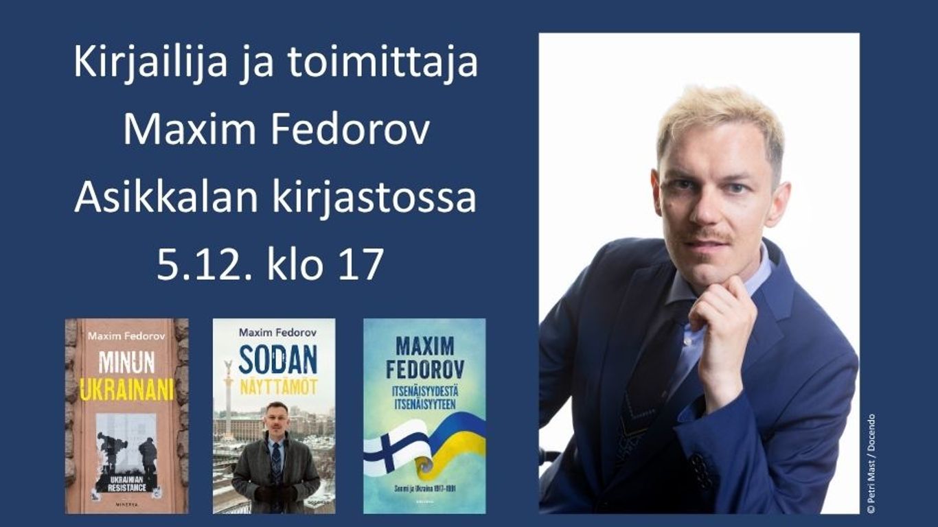 Kirjailija ja toimittaja Maxim Fedorov vierailee Asikkalan kirjastossa kertomassa kirjoistaan sekä työstään Ukrainassa.