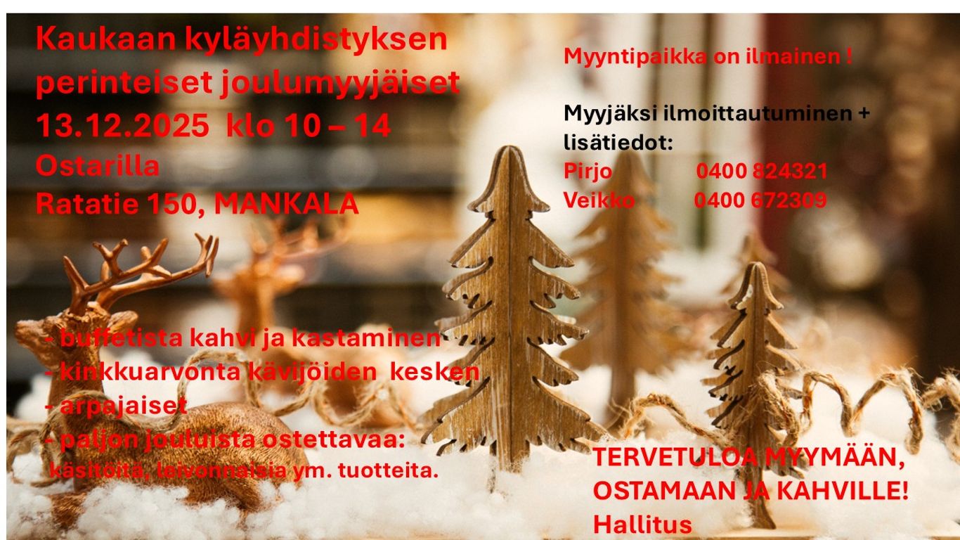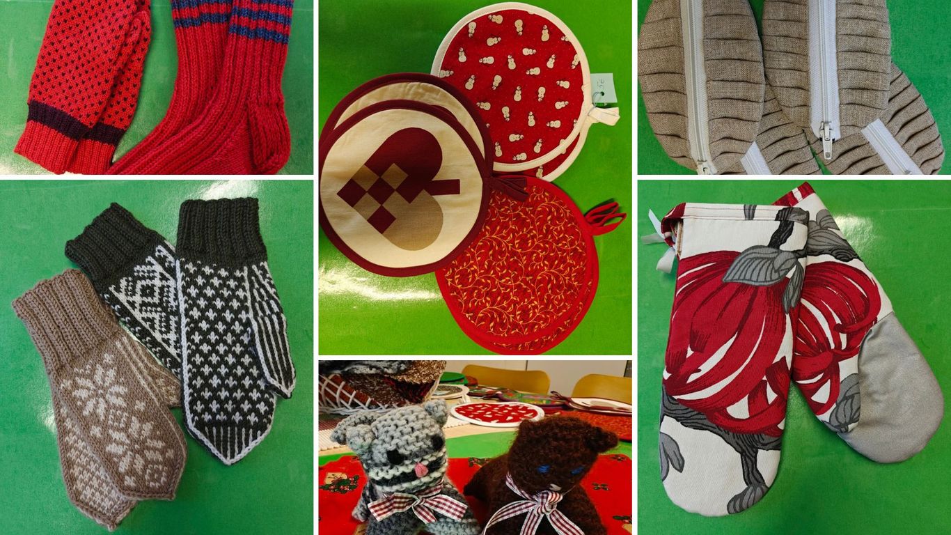 Käsitöitä, arpoja, leivonnaisia, kahvia, riisipuuroa ja rusinasoppaa. Tule hakemaan jouluherkut ja kauniit, käsitehdyt lahjat, koristeet ja kortit meiltä!