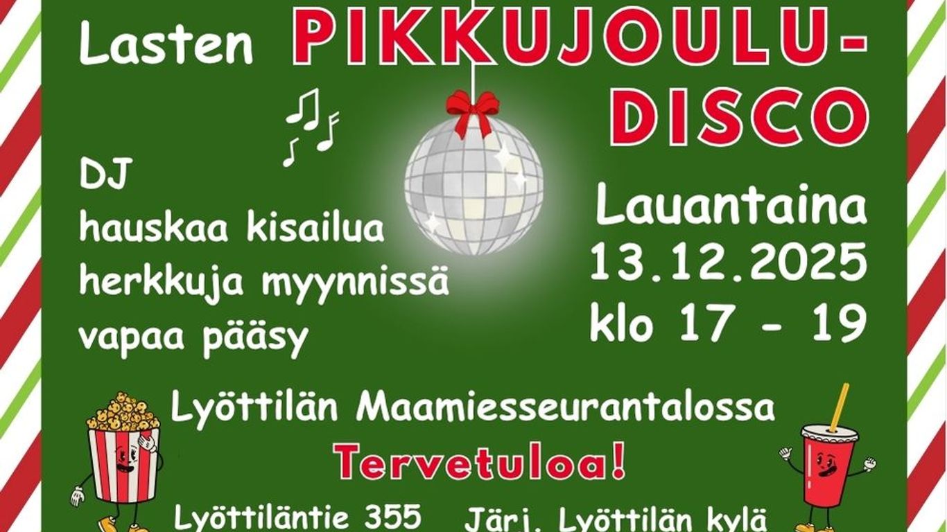 Tervetuloa kaikenikäisille koko perheen joulupuurotapahtumaan! Tarjolla joulupuuroa, glögiä ja pipareita. Joulupukki tavattavissa. Joulukoristeiden vaihtopiste. Yhteisjoululaulutilaisuus klo 13.00.