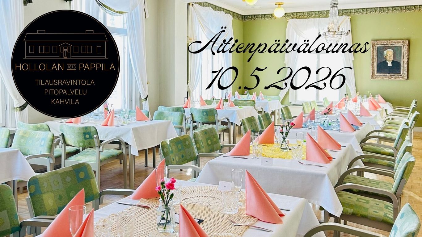 IHollolan Pappilan äitienpäivälounas on yksi kevään odotetuimpia kattauksiamme ja sen äärellä viihdytään läheisten kanssa. Täydennä lounasta kuohuvalla tai muilla virvokkeilla!