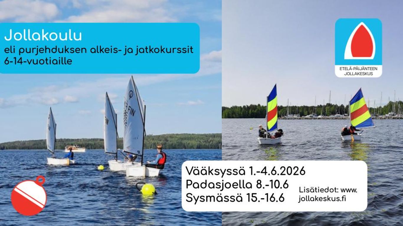 Opi purjehtimaan jollalla! Purjehduksen alkeiskursseilla eli jollakouluissa opit purjehtimaan jollilla. Kurssi soveltuu uimataitoisille 6-14-vuotiaille.