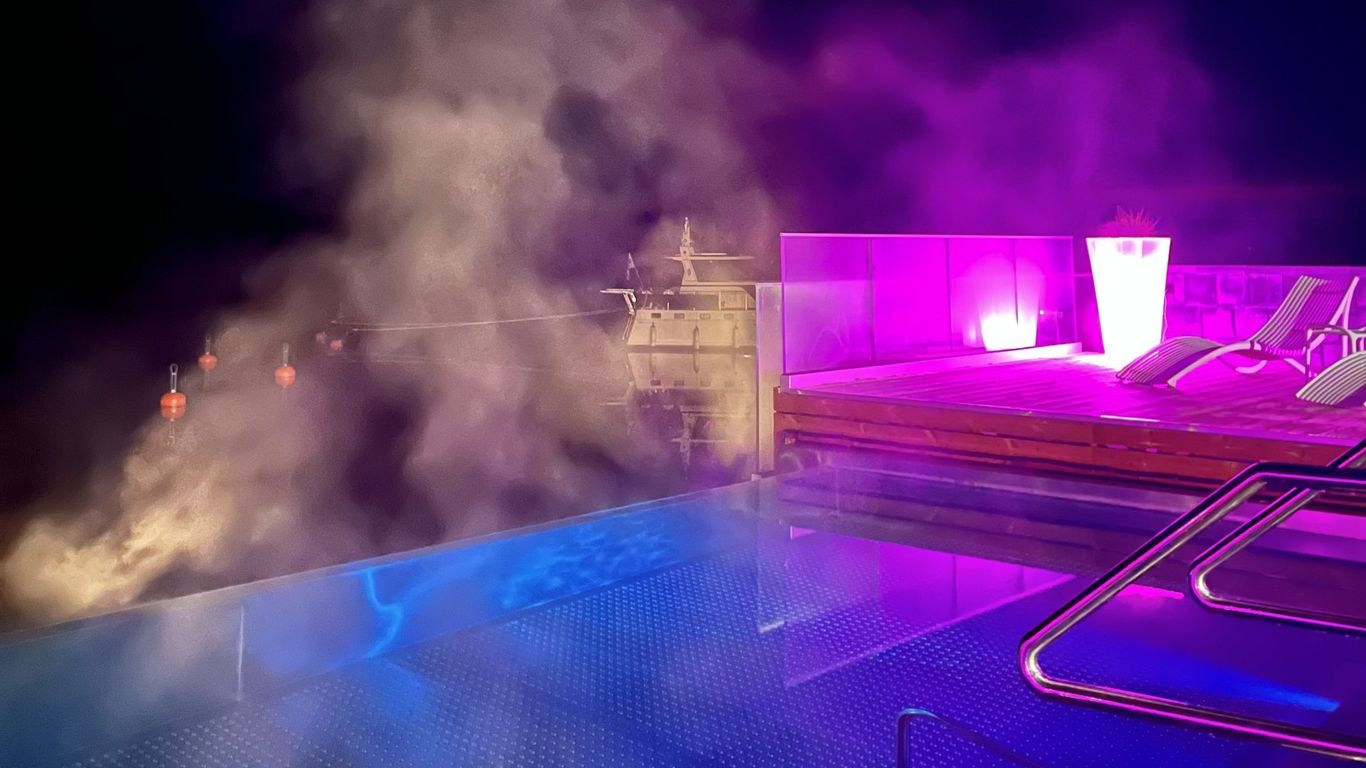 Lehmonkärki Resortin AISTI Sauna & Span Täydenkuun -teemaista saunailtaa tunnelmoi taivaalla oleva täysikuu.