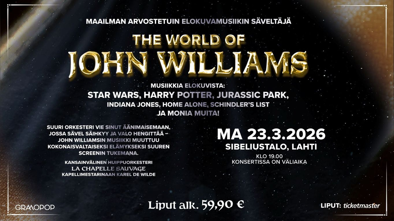 John Williamsin ikoninen elokuvamusiikki livenä Suomeen – mm. Star Wars-, Harry Potter- ja Indiana Jones -klassikot soivat kahdeksassa kaupungissa keväällä Kansainvälinen nuorten ammattimuusikoiden…